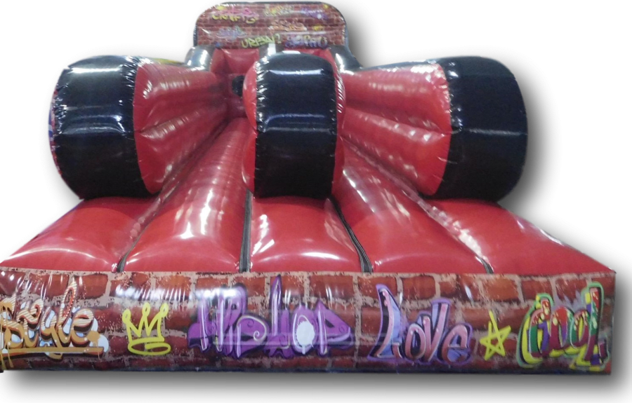 Our amazing Graffiti art bungee run is now available for you to hire for any event you have planned. Object of the game is you and a competitor have bungee cords attached around your waist and you must runs far down the inflatable as possible placing your velcro marker in the middle wall to see who gets the furthest.