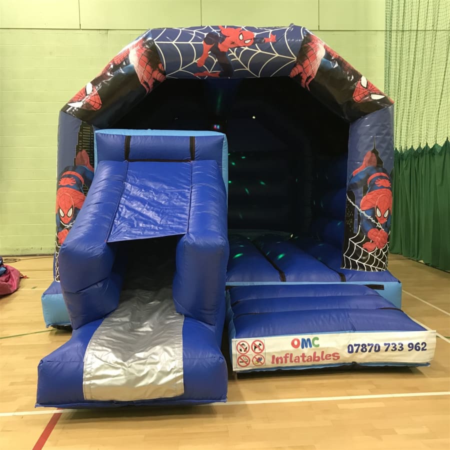 OMC Inflatables are proud to offer you this Spider-Man bounce and slide castle, ready to be hired throughout the Northwest of England including, Manchester, Stockport, Oldham, Wigan, Rochdale, Salford, Warrington, Leigh, Cheshire.
