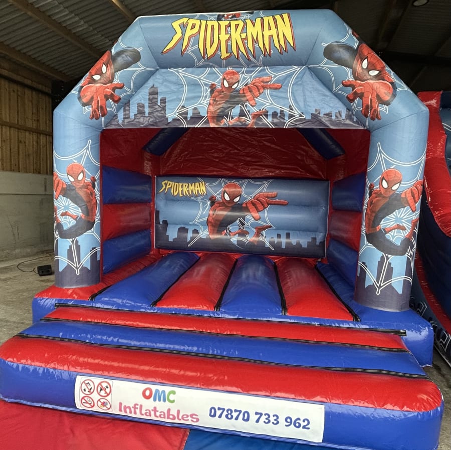OMC Inflatables are proud to offer you this Spider-Man bouncy castle, ready to be hired throughout the North West of England including Manchester, Stockport, Oldham, Wigan, Rochdale, Salford, Warrington, Leigh,Cheshire.
