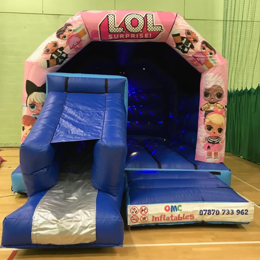 OMC Inflatables are proud to offer you this LOL bounce n slide, ready to be hired throughout the North West of England including Manchester, Stockport, Oldham, Wigan, Rochdale, Salford, Warrington, Leigh,Cheshire.