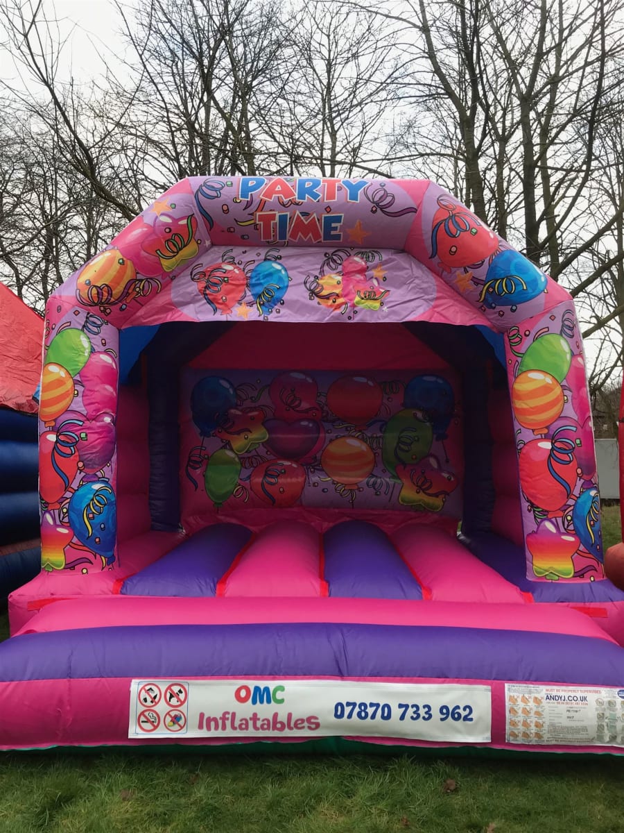 OMC Inflatables are proud to offer you this Party Time bouncy castle, ready to be hired throughout the North West of England including Manchester, Stockport, Oldham, Wigan, Rochdale, Salford, Warrington, Leigh,Cheshire.