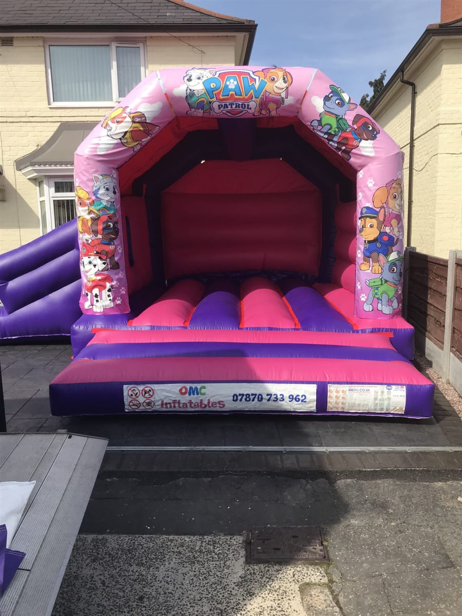 OMC Inflatables are proud to offer you this PAW Patrol bouncy castle with slide, ready to be hired throughout the North West of England including Manchester, Stockport, Oldham, Wigan, Rochdale, Salford, Warrington, Leigh,Cheshire.