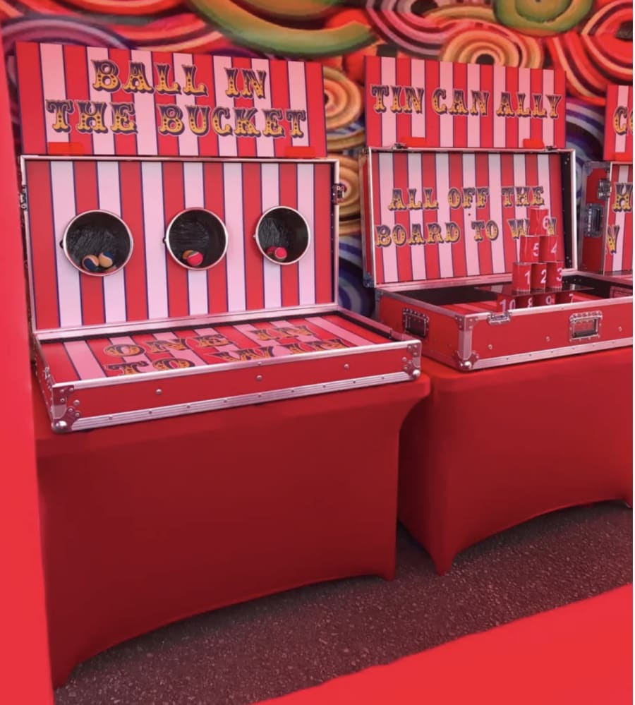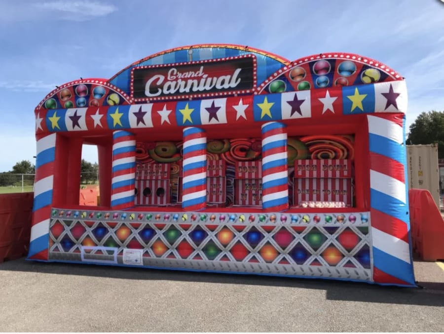 Our new 4 booth Carnival side stall is the perfect option if you're planning on catching a persons eye. With 4 games situated behind the inflatable walls to offer you variety and fun for all.
