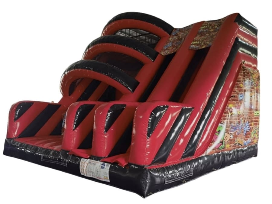 An exciting new product has arrived at OMC Inflatables, the fantastic jump or slide. Climb the ladder then you can either bravely jump off the platform onto the safety of the crash mat or slide down the super slide. Its great fun for everyone! Adults can even give this one a go!